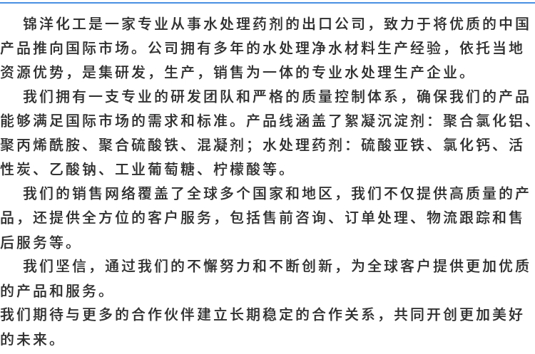4、對某些處理難度大的工業(yè)污水,以PAC為母體,摻入其他藥劑,調配成復合PAC,處理污水能得到驚喜的效果。