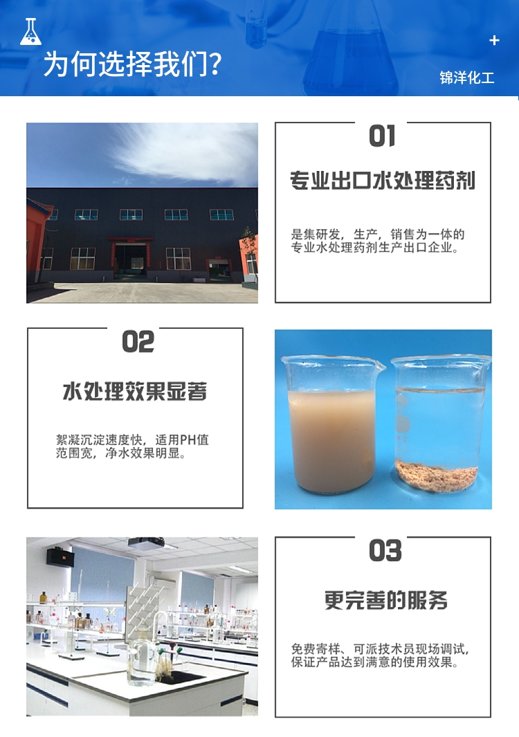 4、原液和稀釋液稍有腐蝕性,但低于其他各種無(wú)機絮凝劑。