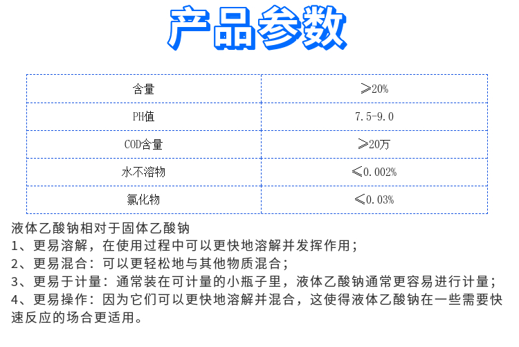 乙酸鈉在污水處理中有多種用途,主要包括: